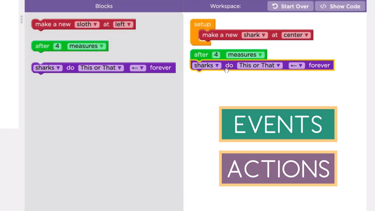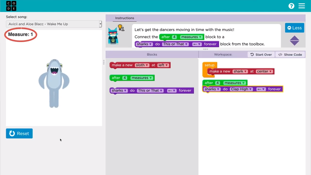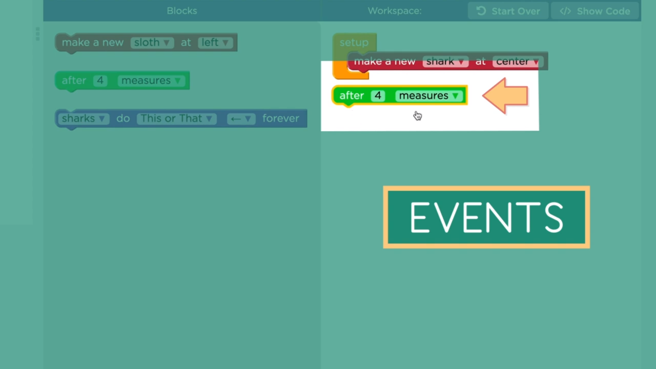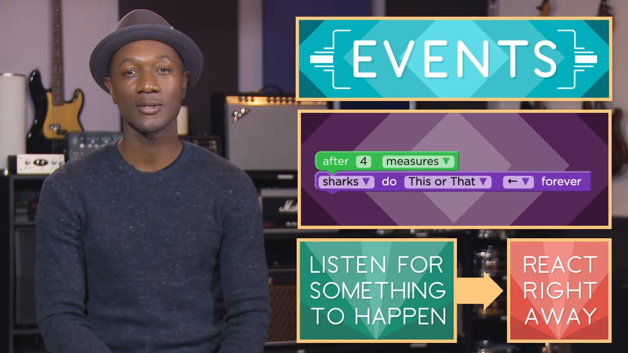 To get your dancers to let loose, you'll need a green event block. This event block says, "after 4 measures".