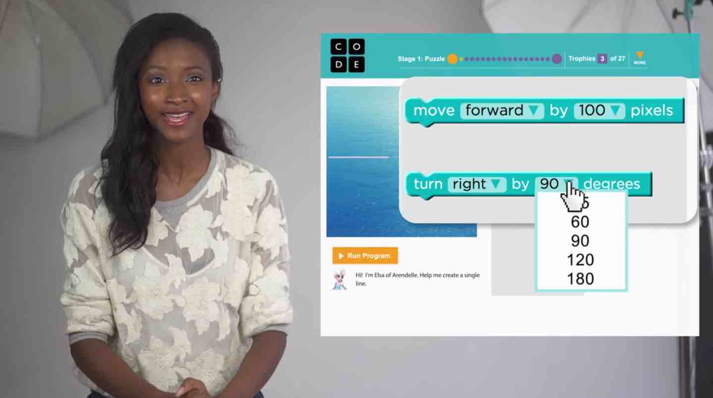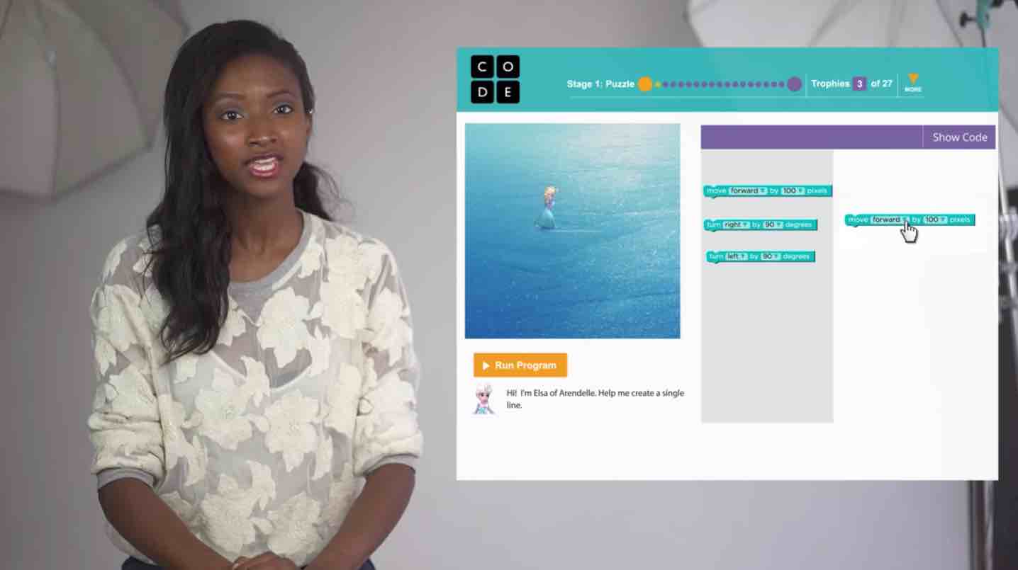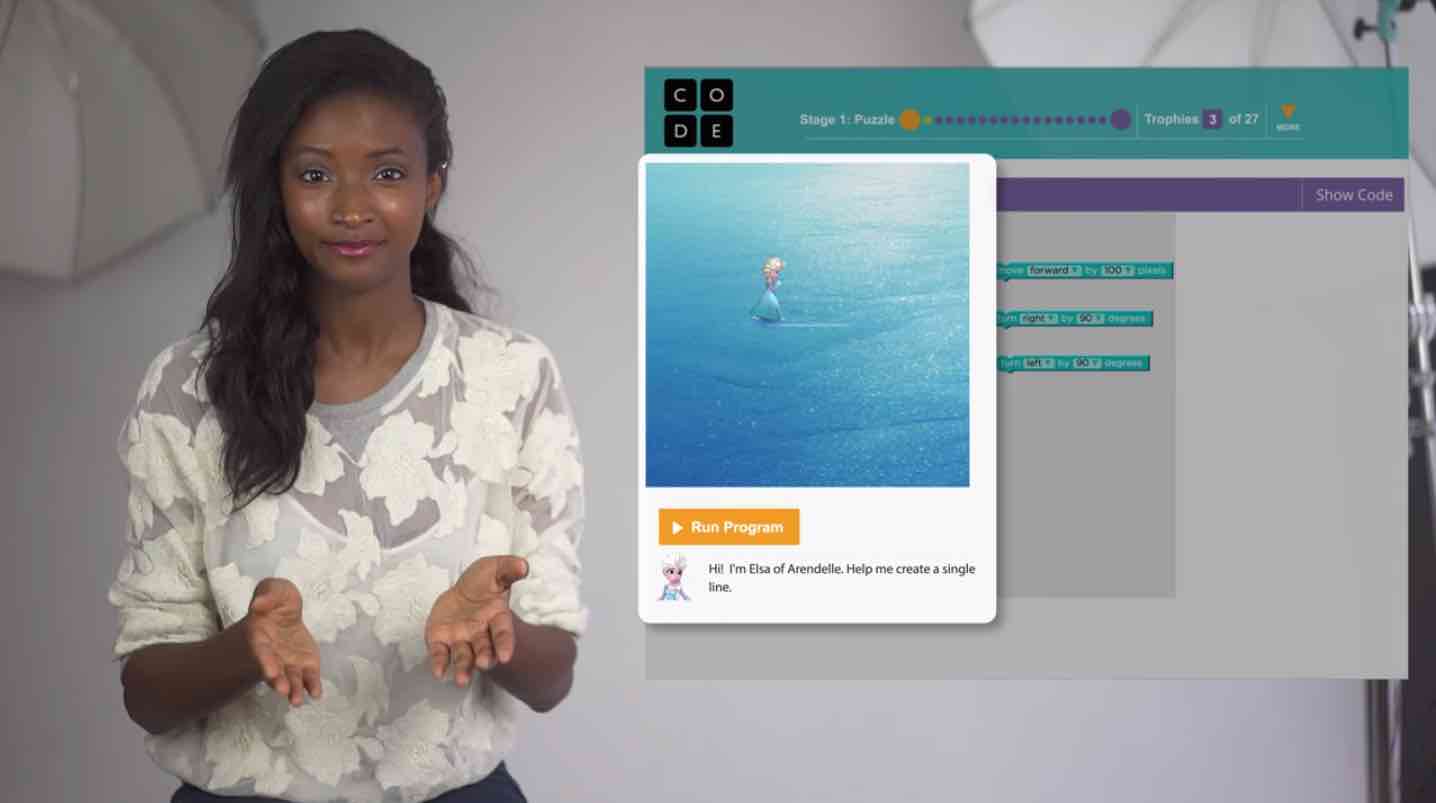 Hi, my name is Lyndsey. I model, act, and write my own apps. Let's use code to join Anna and Elsa as they explore the magic and beauty of ice.